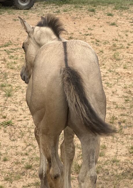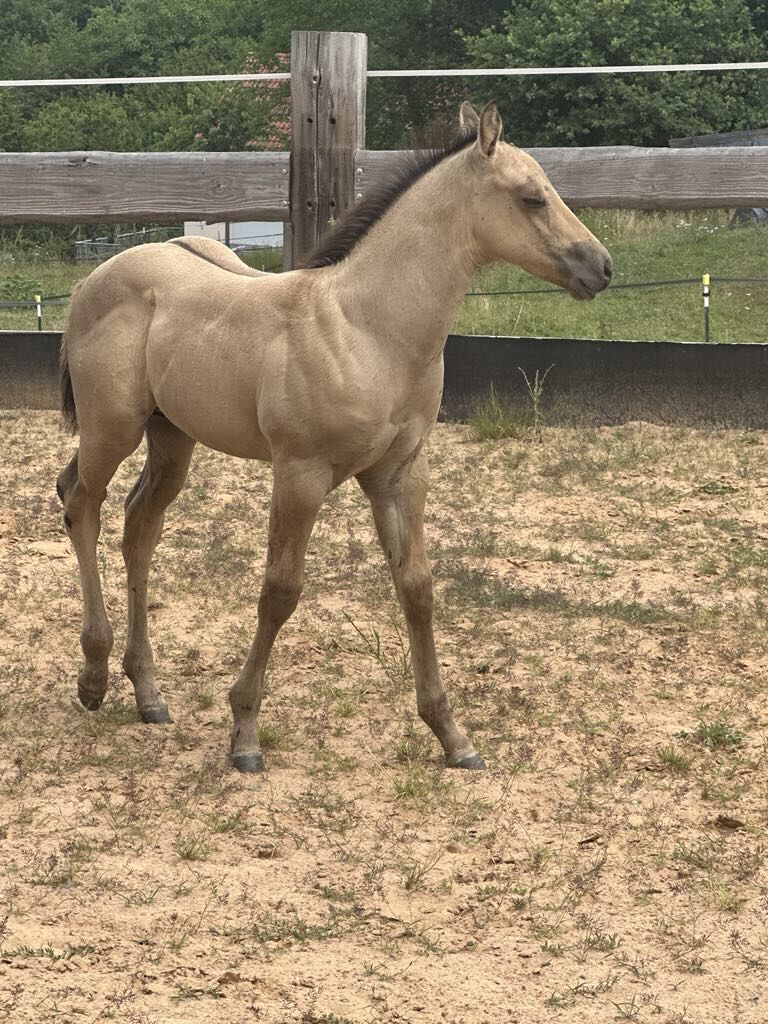 Roosters Bexx On Ice - bildhübscher dunskin Quarter Horse Hengst (5.25 geboren, voraussichtliches Endmaß ca. 150 cm) bringt alles mit, was man sich von einem Nachwuchspferd wünscht: Ein korrekter, kompakter und kräftiger Körperbau, eine gute Bemuskelung und ein gesundes Fundament machen es zu einem echten Allround-Talent mit Zukunft. Der kleine Charmeur wächst artgerecht im Herdenverband mit anderen Fohlen auf und wird täglich liebevoll gehändelt. Bexx zeigt sich durchweg menschenbezogen, verschmust, brav und unkompliziert - einfach ein Schatz im täglichen Umgang. Er liebt seine Kuscheleinheiten und bleibt dabei stets cool und freundlich. Bei Abgabe: geimpft, regelmäßig entwurmt, kennt Tierarzt & Hufschmied. Toller Beweger - ideal für Freizeit und mehr. Ein Nachwuchspferd mit viel Herz, Qualität und Potenzial - ideal für Menschen, die einen unkomplizierten, talentierten Partner fürs Leben suchen.