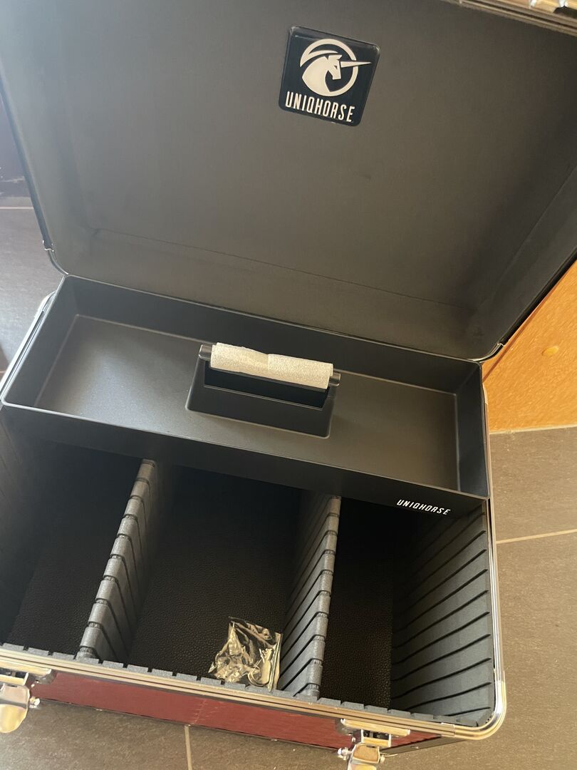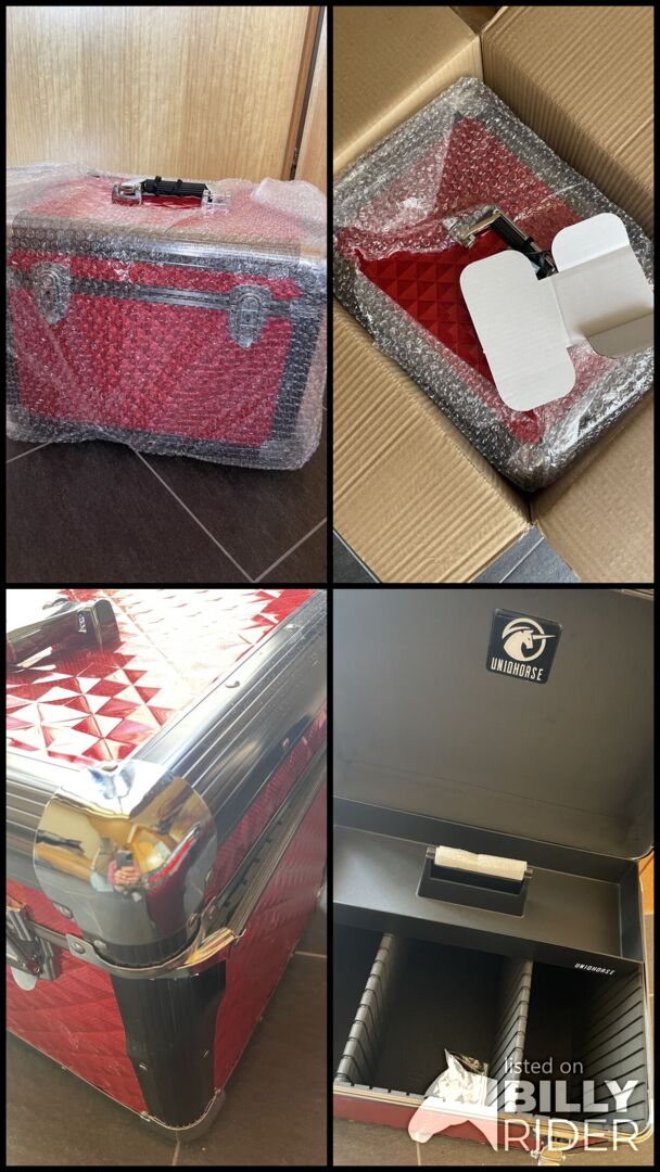 Verkaufe hier eine noch neue Unique Horse Putzbox. Modell Cosmic in rot. Die Box erlitt einen Transportschaden (siehe Bilder). Ist an der einen Ecke etwas eingedellt, aber noch voll funktionsfähig. NP: 70€
