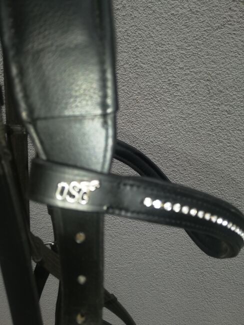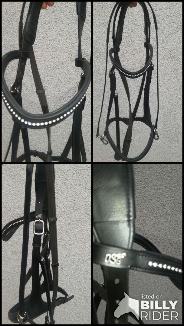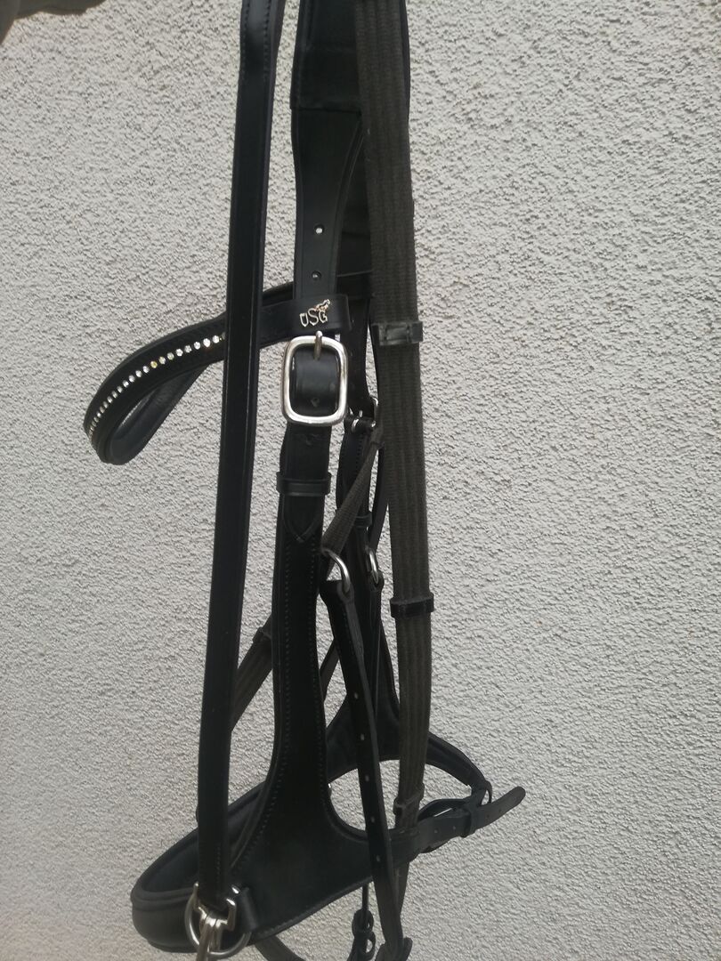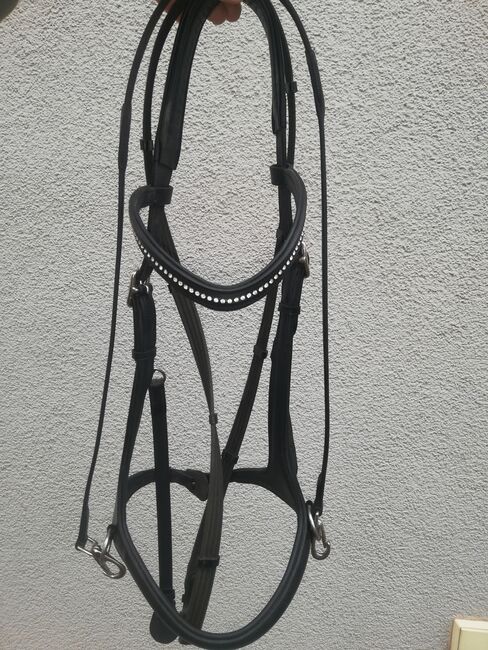 Wunderschöne Trense aus sehr welchem Leder und einem funkelnden Stirnriemen.