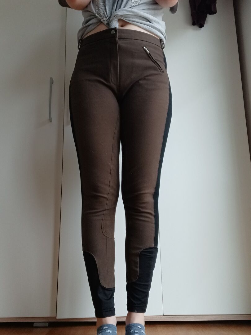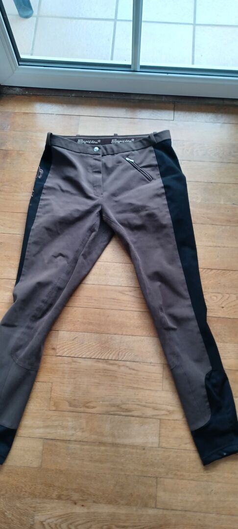 Verkaufe eine Reithose in schwarz-braun, Größe M (genauer 40 Langgröße = 80), oft getragen, innen am Schritt etwas Pilling, siehe Foto. Kann vor Verkauf auch nochmal gewaschen werden.