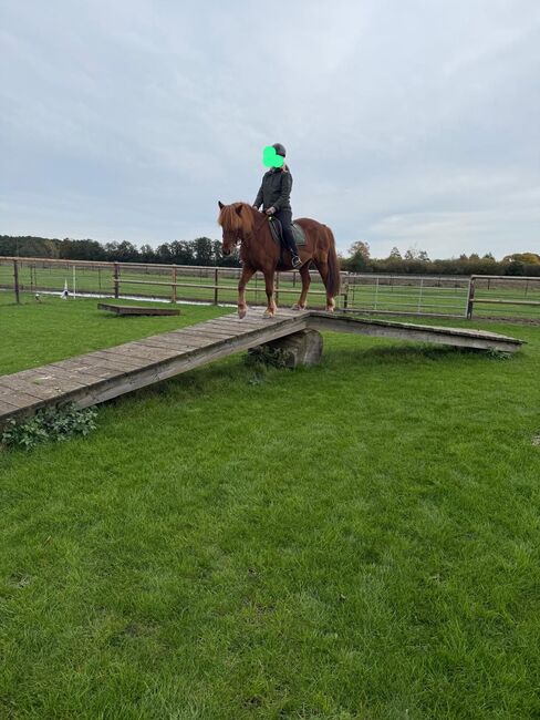Zum Verkauf steht der bildschöne Isländer-Wallach Vinskapur v. Schepershof (Vinny), geboren 2008, mit einem Stockmaß von ca. 140 cm. Er ist ein dunkler Fuchs mit kompaktem, harmonischem Gebäude. Vinny überzeugt nicht nur durch sein ansprechendes Äußeres, sondern vor allem durch seinen liebenswerten Charakter. Er ist menschenbezogen, freundlich, zuverlässig und sehr brav im Umgang. Durch seine gelassene, unerschrockene und nervenstarke Art gibt er seinem Reiter jederzeit ein sicheres Gefühl. Er ist ehrlich, geduldig, souverän sowie arbeits- und lernwillig und lässt sich fein reiten. Der Wallach verfügt über eine solide Ausbildung, gute Grundgangarten und ist ein 4-Gänger. Er ist straßen- und geländesicher und zeigt sich sowohl unter dem Sattel als auch bei der Bodenarbeit stets motiviert und kooperativ. Besonders im Gelände ist er ein zuverlässiger Partner und gibt seinem Reiter viel Sicherheit. Vinny mag keine wechselnden Reiter und braucht eine Bezugsperson. Er wird nicht an Anfänger abgegeben. Im Umgang ist Vinny unkompliziert. Er ist schmiede- und verladefromm, brav beim Tierarzt und Hufschmied, barhuf, regelmäßig entwurmt und geimpft. Er lebt aktuell im Offenstall, ist ranghoch, dabei aber fair, gut sozialisiert und verträglich mit anderen Pferden. Vinny leidet an saisonalem equinem Asthma, welches bei gutem Management und regelmäßiger Bewegung keine Einschränkungen darstellt. Er wurde zudem chiropraktisch behandelt und befindet sich in einem gepflegten Zustand. Dieser tolle Wallach ist der ideale Partner für Freizeit- und Geländereiter, die ein verlässliches, feinfühliges und charakterstarkes Pony suchen. Er wird schweren Herzens ausschließlich in absolut gute und verantwortungsbewusste Hände abgegeben, die seine besonderen Qualitäten zu schätzen wissen. Wird nicht an Reitschulen abgegeben.