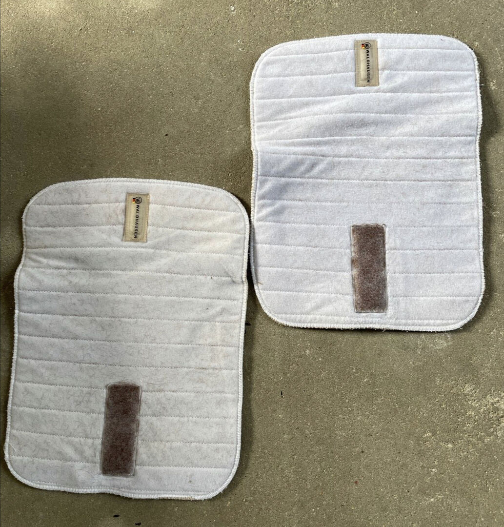 - Eskadron Climatex Bandagierunterlagen (2er-Set) in schwarz, wurden gebraucht, aber ohne Löcher oder ähnliches, Neupreis: 30€ (Verkaufspreis: 15€) - Waldhausen Bandagierunterlagen mit Klettverschluss (4er-Set) in weiß, wurden genutzt, aber sind in einem guten Zustand, Neupreis war 25€ (Verkaufspreis: 15€) - Eskadron Climatex Bandagierunterlagen (2er-Set) in blau, wurden wenig genutzt und sind somit in einem sehr guten Zustand, Neupreis war 30€ (Verkaufspreis: 15€) - TransHorseSport Bandagierunterlagen mit Verstärkung im Hufbereich in grau (2er-Set), sie wurden wenig genutzt und sind in einem guten Zustand, Neupreis war 50€ (Verkaufspreis: 20€)