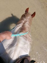 Robbie ist extrem neugierig, sehr schlau und lernwillig, aber auf Grund seines Alters (Tinker reifen langsamer als die meisten) muss man auch darauf achten ihn nicht zu überfordern. Er lernt schnell neue Dinge, wie z.B. dem Targetstick, nach dem 3. Versuch mit dem Klicker, zu folgen. Bei Schrittausritten alleine, oder zu 2. ist er richtig motiviert zu marschieren und sich zwischendurch mit Gras zu verköstigen.