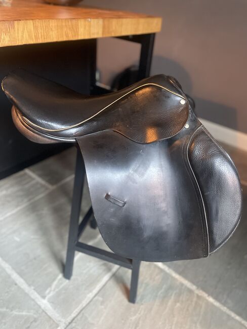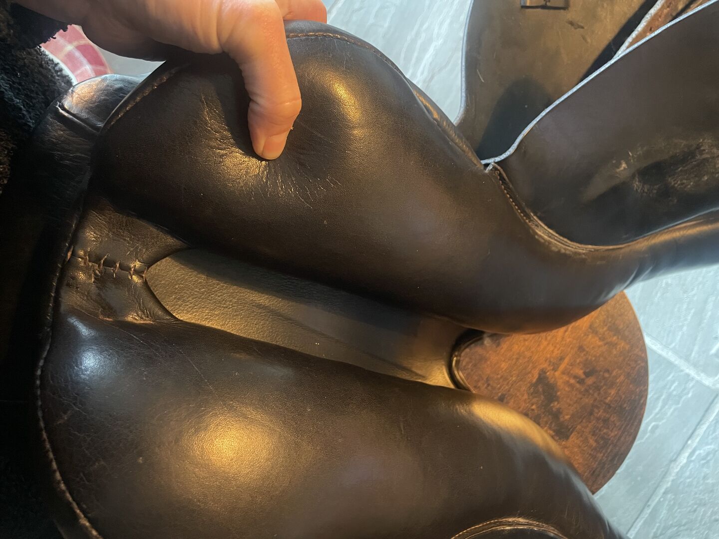 Gebrauchter Sattel, neu gepolstert & super weich. Passt gut auf Endmaßponies mit etwas mehr Schulter und leichtem Rist.