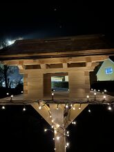 Ich biete hier ein liebevoll handgefertigtes Vogelfutterhaus im rustikalen Blockhaus-Stil an.