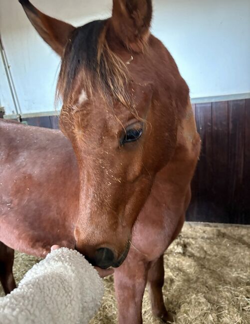 Er kennt Boxenhaltung und Offenstall. Verträglich in der Herde.
