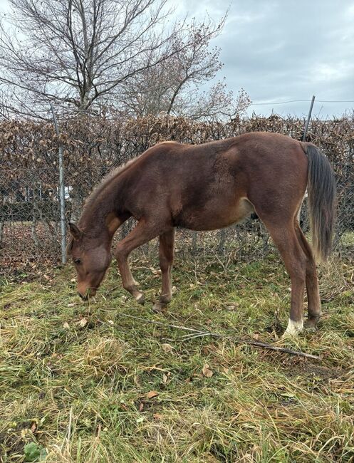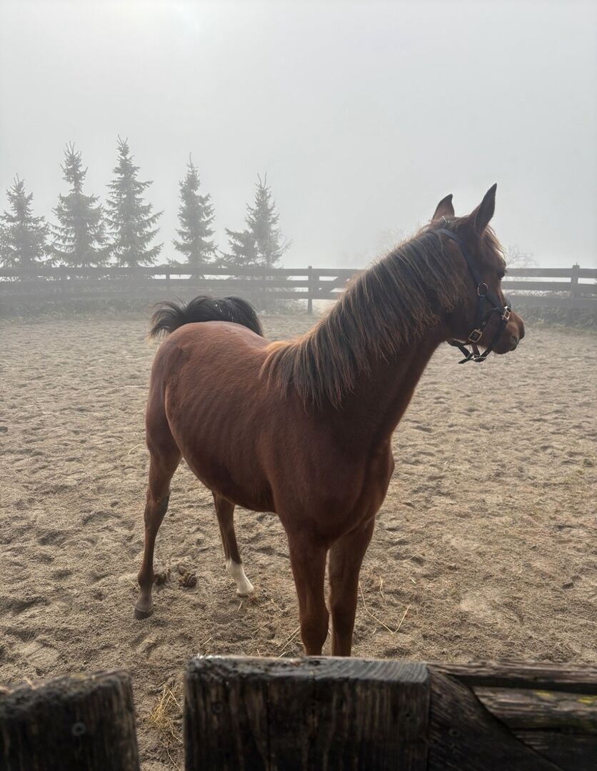 Er kennt das Fohlen ABC, ist halfterführig und lässt sich ohne Probleme anfassen und kuscheln. Gegebenenfalls auch für die Zucht interessant, als Distanzpferd oder als Freizeitkumpel.