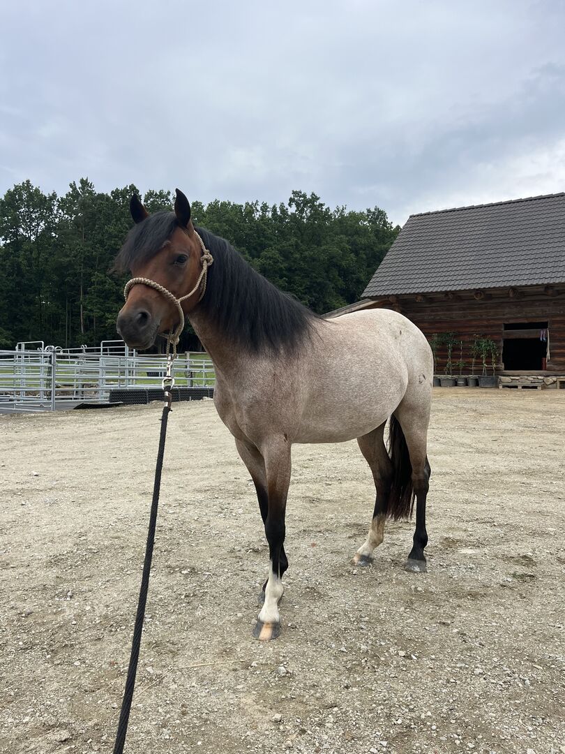 | Farbe | Bay Roan (brauner Farbwechsler) |