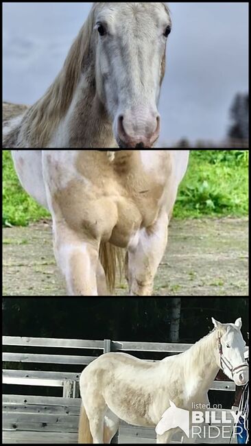 Zum Verkauf steht eine 3,5-jährige Palomino-Warmblutstute. Ursprünglich aus den Niederlanden.