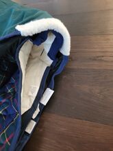 Die Unterdecke hat zusätzliche Klettverschlüsse an der Brust, dem Schweif und am Hals zur sicheren Befestigung an der Überdecke - kein verrutschen. Zusätzlich hat sie einen elastischen und verstellbaren breiten Bauchgurt. Für kalte Wintertage ist auch die Unterdecke mit Füllwatte gefüttert und hält schön warm. Die Unterdecke kann auch ohne die Winterdecke getragen werden, dafür befindet sich an der Brust eine verstellbare Schnalle sowie ein langer Klettverschluss. Die abnehmbaren Beingurte der Winterdecke können einfach an den vorgesehen Ösen der Unterdecke angebracht werden und halten die Decke zusätzlich in Position. Auch die Unterdecke hat ein Widerristpad gegen Scheuern.