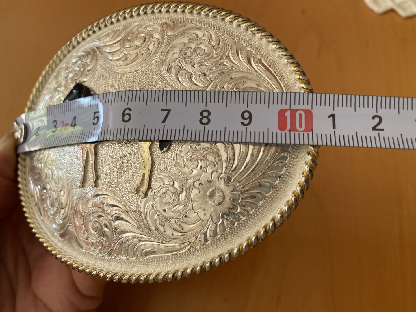 Western Buckle mit Paint Horse Motiv, goldfarbige Umrandung, Maße 10,5 x 8 cm, passend für Gürtel mit 3,5 - 3,8 cm Breite