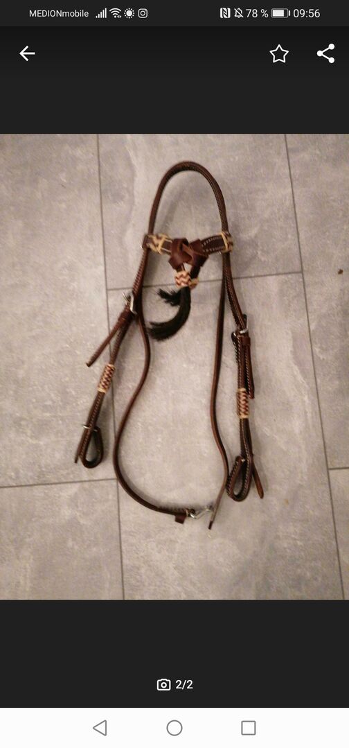 Ich verkaufe hier meine neue western Trense sie lag 2 mal am Pferd. Sie ist absolut neu