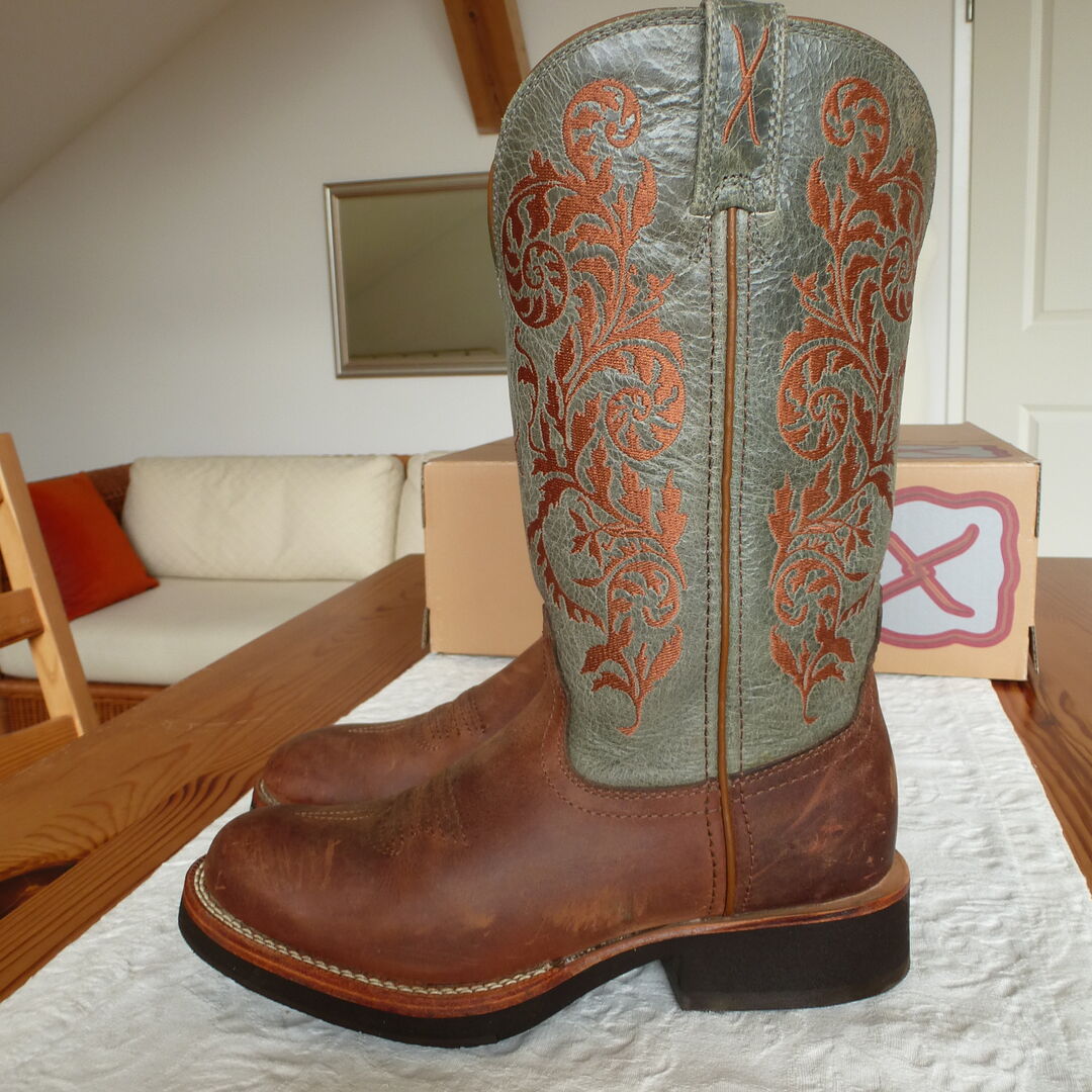 Neuwertige handgemachte und absolut hochwertige Westernboots - sehr bequem und super verarbeitet ! Von der Optik her sind sie ein echter Hingucker :-) Gr. 36/37. Sie fallen aber eher aus wie Gr. 37 ! Innen steht die Größe 5 1/2. Mit Original-Karton. Sie wurde nur einmal getragen - leider sind sie mir doch zu groß. Ich habe 259,- Euro dafür bezahlt.Fragen beantworte ich gerne und prompt. Sollten die Stiefel von der Größe her nicht passen, würde ich sie auch wieder zurücknehmen :-) Weitere Fotos folgen !