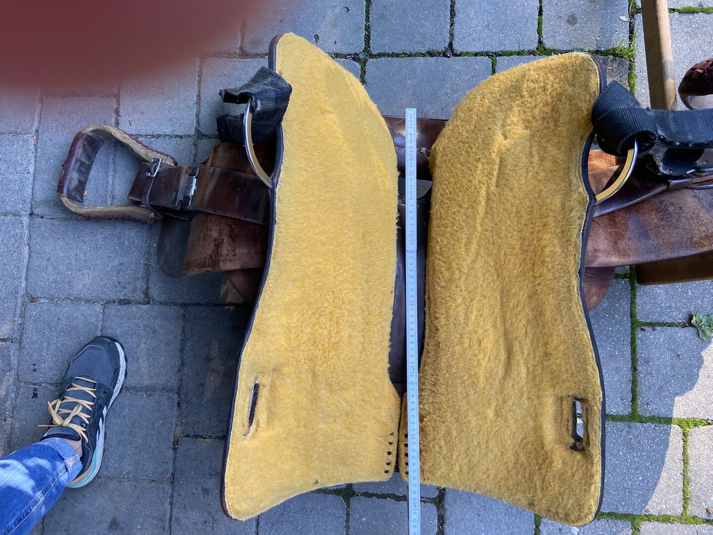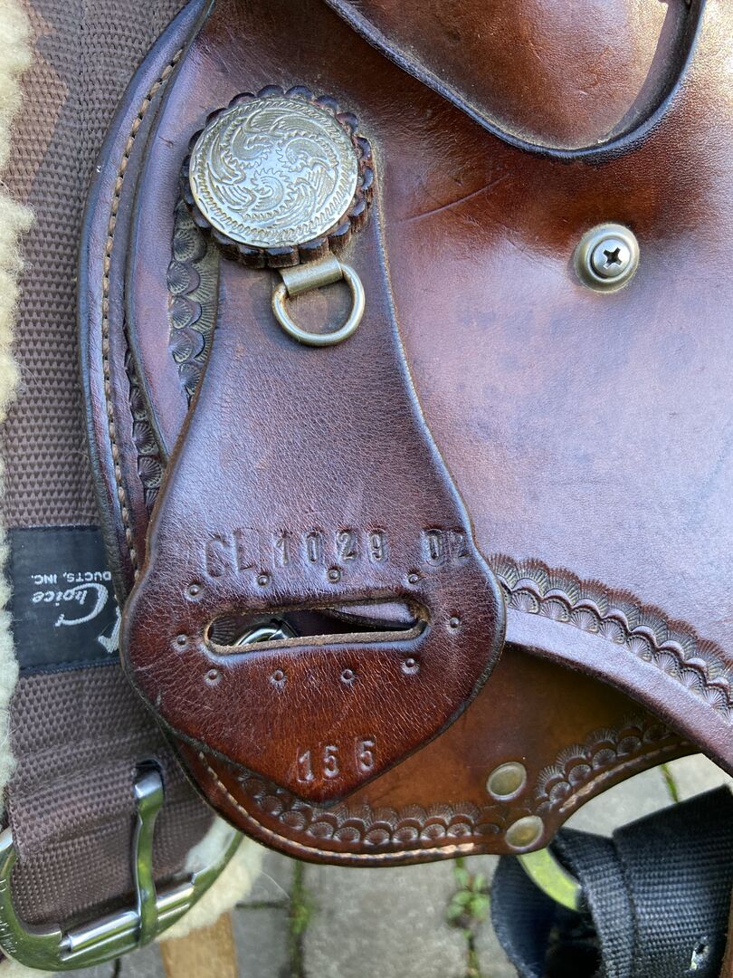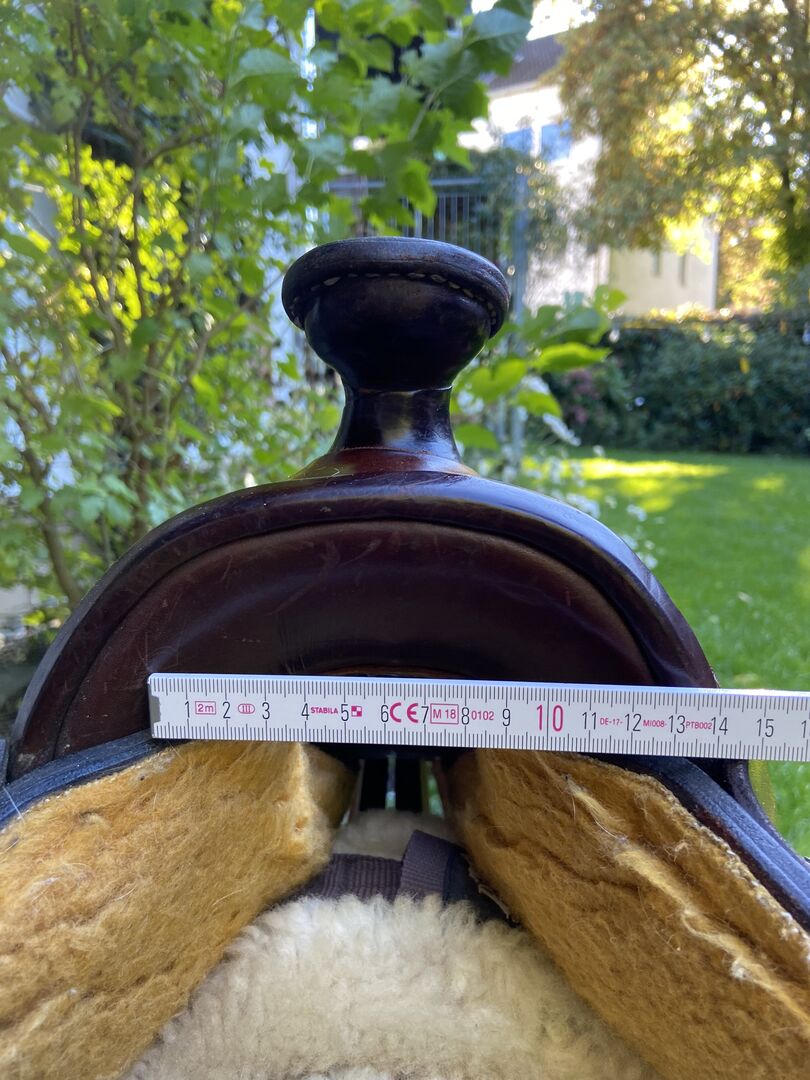 Ich biete einen Westernsattel der Marke California Brand. Er lag auf einer schmalen und kleinen Haflingerstute mit Stockmaß 1,42m. Weitere Maße siehe Fotos.