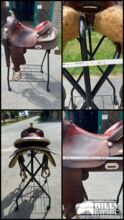 Biete hier einen gebrauchten Western Training/Arbeitssattel günstig zum verkaufen an. Der Sattel weißt über all die Jahre ganz normale Gebrauchsspuren an, ist jedoch noch voll und ganz einsetzbar. Am Sattelhorn wurde das Rohleder leider von Mäusen beschädigt, was ihn absolut nicht beeinträchtigt.