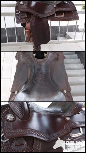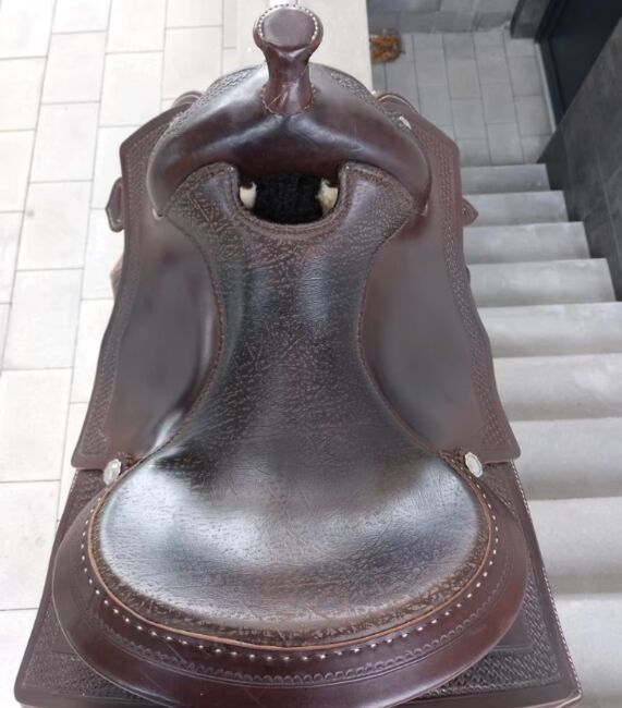 Continental Westernsattel Equiflex. Im März 2024 gekauft. ca. 1 Jahr unregelmäßig beritten. 16er Sitz. Normale Gebrauchsspuren. Für Pferde mit viel Schulter und wenig Schwung geeignet. Baumnummer 72plus. Länge Concha 64 cm. Länge Skirt 68 cm. Standort nähe Kreuth. Leider passt der Sattel nicht mehr. Kann zur Probe gegen Hinterlegung des Kaufpreises mitgenommen werden.