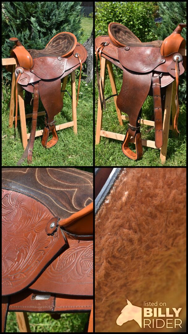 Ich verkaufe hier einen Westernsattel mit wunderschönen Punzierungen. Abstand Choncha: 15,6 cm Gesamtlänge: 63 cm Sitzbreite: 40 cm Meinem Pferd passt er leider nicht. Jedoch ist dieser Westernsattel einfach so wunderschön, dass ich ihn nicht rumliegen lassen möchte!