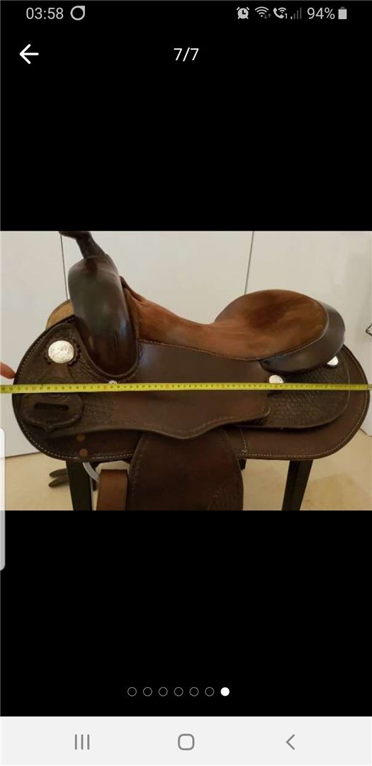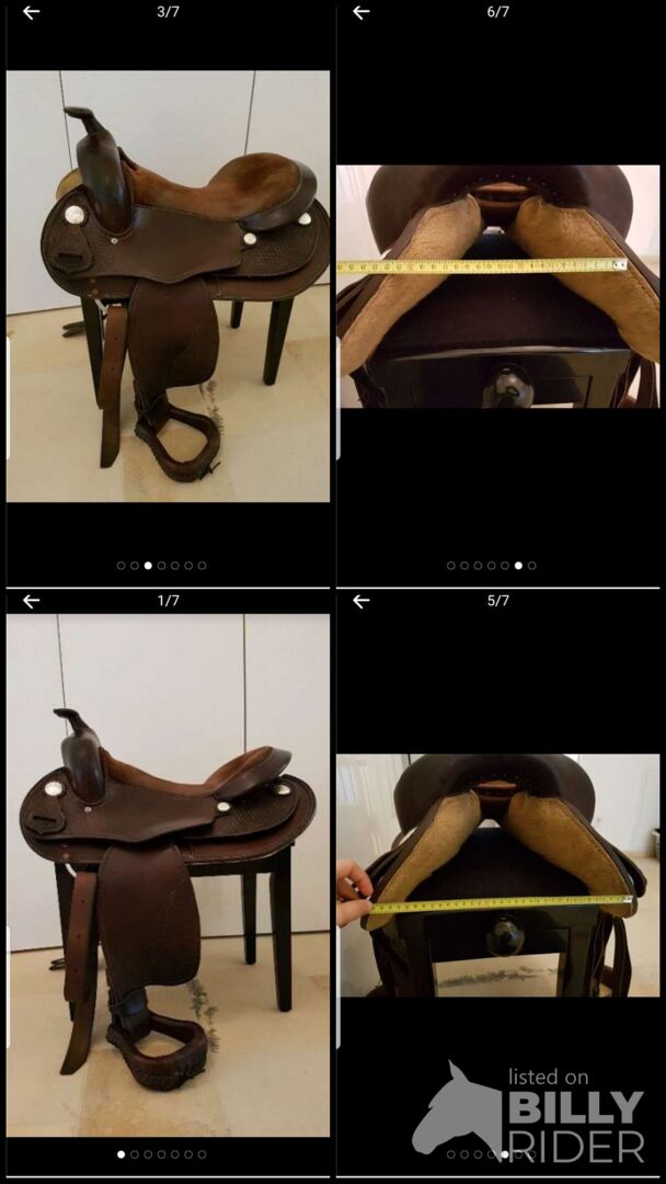 Sehr gut erhaltener und gepflegter Westernsattel. Wurde ca. 3 Jahre lang genutzt. Er lag auf einem schmalen Pferd (152 cm Stockmaß) mit kurzem Rücken. Der Sattel ist wirklich sehr bequem und ich gebe ihn nur her, weil er nicht mehr passt. 🤷 Maße siehe Bilder.