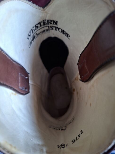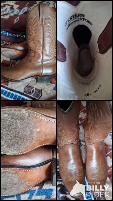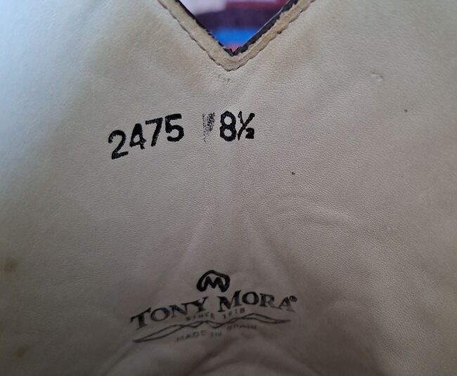 Ich verkaufe ein Paar Westernboot-/Stiefel der Fa. Tony Mora Gr. 41-42 (8 1/2) Die Stiefel sind getragen und aber gut erhalten. Die Sohlen sollten ggf als Schutz der Nähte neu gemacht werden. Gebrauchsspuren siehe Fotos.