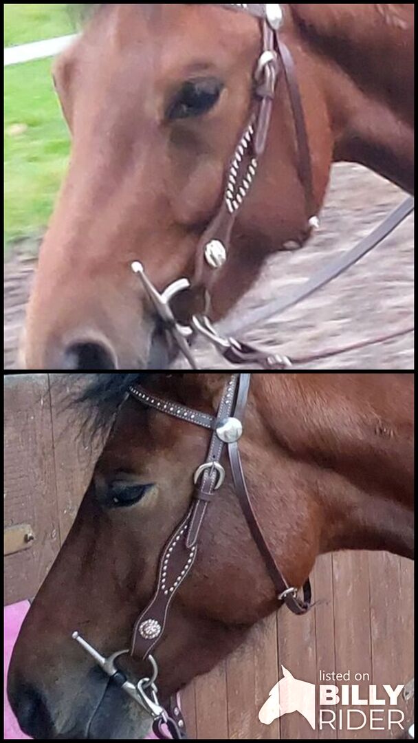 Verkaufe eine kaumgenutze westerntrense ,wegen farbwechsel . Ohne die conchias es sind die originalen Schrauben wieder dran. Mit passenden zügeln dabei