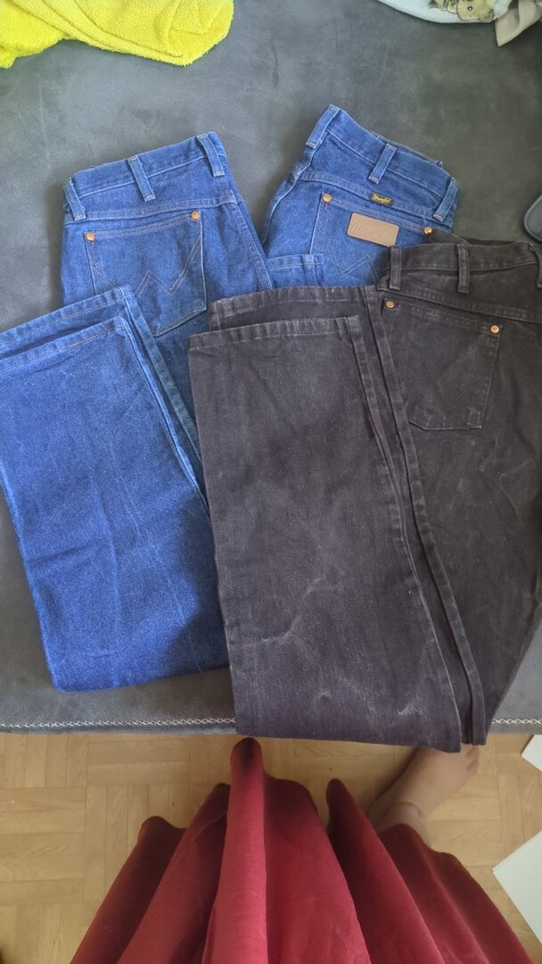 3 Paar Wrangler Jeans abzugeben. 2x Jeansblau 1x graubraun. Wurden nur anprobiert, da sie mir zum Reiten zu eng sind werden sie abgegeben