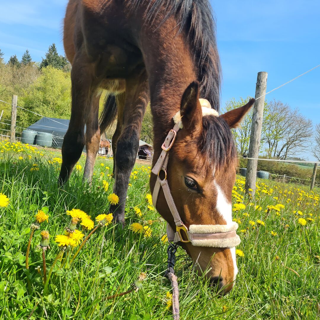 Diese junge Stute überzeugt nicht nur mit ihrem eleganten Erscheinungsbild, sondern auch mit ihrem freundlichen und umgänglichen Charakter. Sie hat bereits ihre ersten Spaziergänge mit Bravour gemeistert und zeigt sich dabei äußerst gelassen und neugierig.