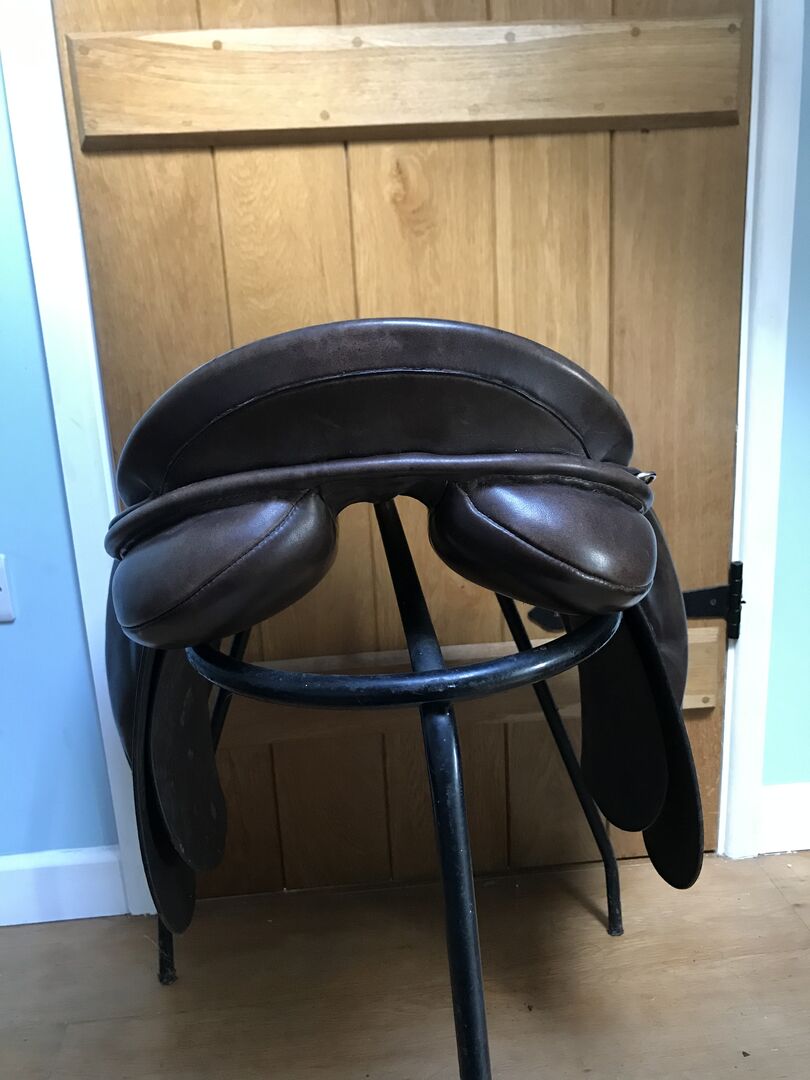 Jeffries Erle VSD-Sattel. 17" Sitz. Extra breit (gestempelt WW). Havanna. Einige Gebrauchs- und Altersspuren, aber der Baum und alle Gurtstrippen sind in Ordnung. Benutzt auf einem sehr breiten, flach gepolsterten Section D. 325,- €. Abholung in der Nähe von Llanrhystud. Mögliche lokale Lieferung möglich.