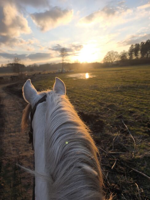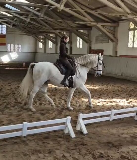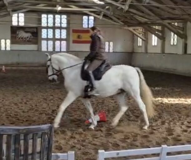 🦄 Heredero: Ein spanischer Traum in Weiß sucht seinen Menschen Eckdaten im Überblick: Rasse: Pura Raza Española (PRE) Typ: Wallach, Schimmel Charakter: Zuverlässig, brav, unkompliziert & lernwillig Besonderheit: Wird gebisslos geritten; absolutes „Sitzsofa“ Handicap: Blind auf dem linken Auge (im Alltag und beim Reiten völlig unproblematisch) Was HEREDERO so besonders macht HEREDERO ist nicht einfach nur ein Pferd – er ist ein Partner. Trotz seines fehlenden linken Auges strahlt er eine unglaubliche Sicherheit und Ruhe aus. Wer ihn reitet, vergisst schnell, dass er eine kleine Einschränkung hat, denn sein Vertrauen in den Menschen ist grenzenlos. Er ist die perfekte Mischung aus spanischem Temperament (motiviert und lernwillig) und absoluter Gelassenheit. Seine Talente Geländeprofi: Er geht sowohl in der Gruppe als auch alleine brav und sicher ins Gelände. Komfort-Garantie: Durch seine bequemen Gänge ist er auch für längere Ritte ein wahrer Genuss. Feine Kommunikation: Da er gebisslos geritten wird, ist er ideal für Reiter, die Wert auf eine feine, vertrauensvolle Hilfengebung legen. Was ich mir wünsche: HEREDERO ist aktuell etwas unterfordert. Er möchte nicht nur „dabei sein“, sondern aktiv mit seinem Menschen Neues entdecken. Ich suche jemanden, der: Seine Sensibilität und seinen ehrlichen Charakter schätzt. Ihm die Beschäftigung bietet, die er sich wünscht. Einen Freund fürs Leben sucht, nicht nur ein Sportgerät. Röntgenbilder liegen vor. Standort: 23795 Traventhal