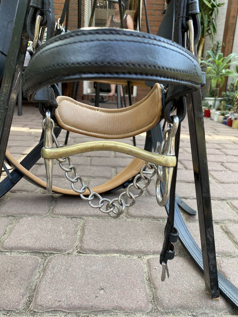 Zum Verkauf steht ein Zweispänner-Brustblattgeschirr in Gr. Full. Das Geschirr ist komplett (4x Zugstränge, 2x Aufhalter, 2x Kopfstücke mit Gebiss). Es ist schwarz, braun unterlegt, Leine braun. Zugstränge haben ein Maß vom 225 cm. Inklusive Postkutschen Kandare in Gr. 15,5 cm. Sehr guter Zustand, selbst nicht gebraucht aber gebraucht gekauft.